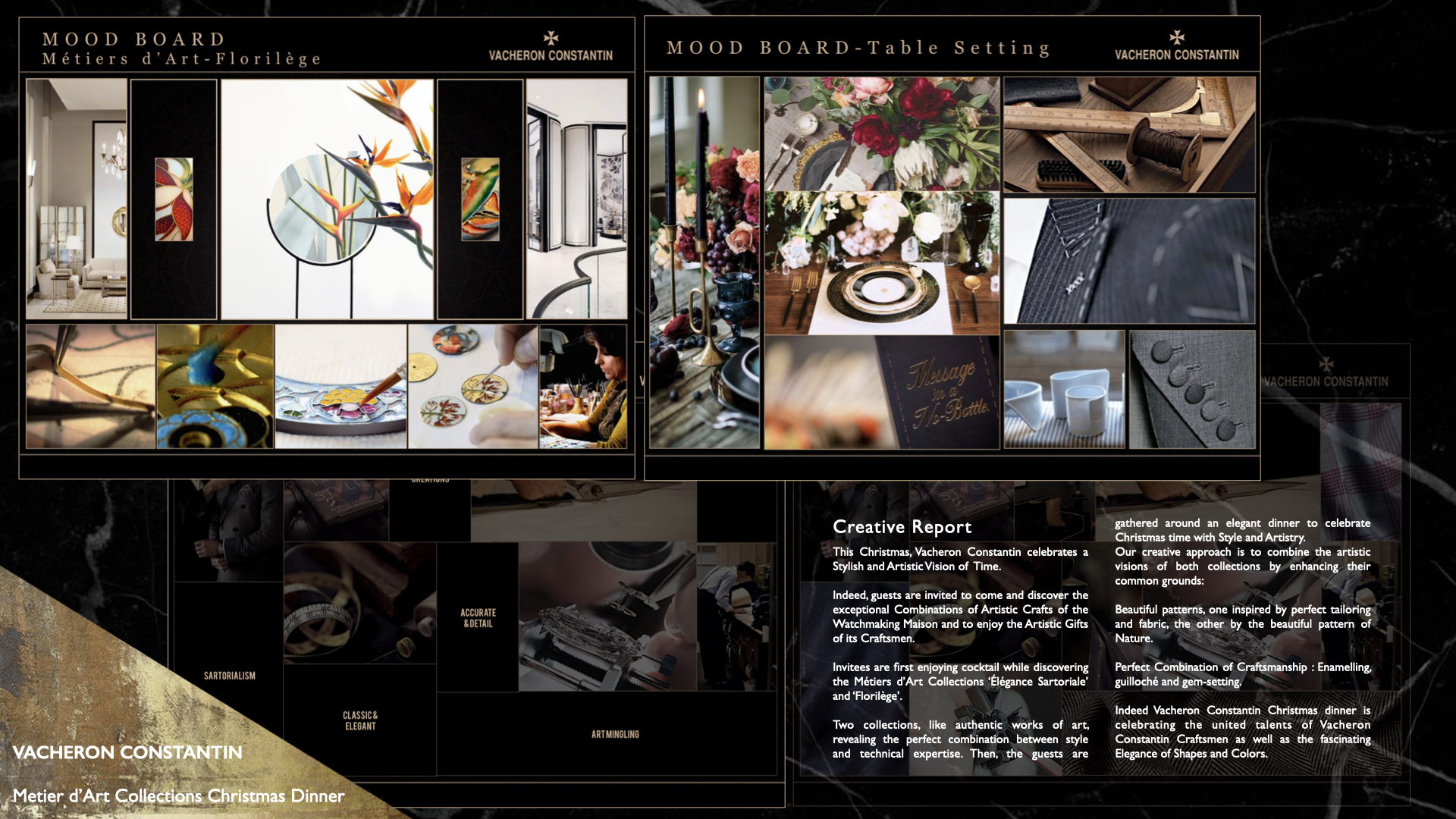 This Christmas, Vacheron Constantin celebrates a Stylish and Artistic Vision of Time. Guests are invited to come and discover the exceptional Combinations of Artistic Crafts of the Watchmaking Maison and to enjoy the Artistic Gifts of its Craftsmen. Indeed Vacheron Constantin Christmas dinner is celebrating the united talents of Vacheron Constantin Craftsmen as well as the fascinating Elegance of Shapes and Colors.